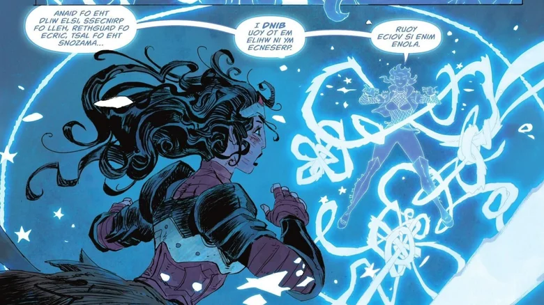 자타나가 거꾸로 말하는 바람에 다이애나는 무슨 일이 일어났는지 바로 알아차리지 못했습니다. 하지만 이제 원더우먼은 자타나가 자신의 마법을 조종하고 무력화할 수 있다는 것을 이해하게 되었습니다. 원더우먼의 상징적인 무기는 올가미이지만, 지금 수어사이드 스쿼드는 자타나가 만든 올가미로 그녀를 묶어 놓았습니다.